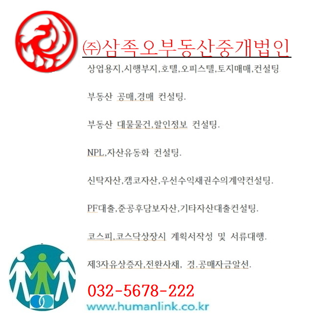 카페상호 :휴먼링크 부동산상호:(주)삼족오부동산중개법인 등록번호:28110-2019-0001